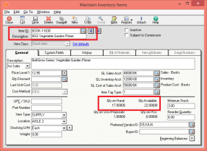 In the below screenshot you can see the Sage 50 US inventory item screen.